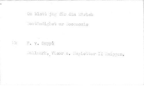//// Om blott jag får din kärlek' 3estndighet ur Eoccaocio //// F. v. Supp6 //// allmark Visor o. Kupletter II Knippan. ////