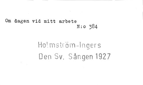 //// Om dagen vid mitt arbete //// N:o 384 //// ii+Ymstr-öm-Ingers //// Den Sv. Sången 1927 ////