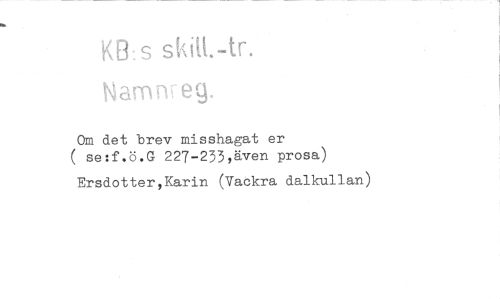 //// KEks skilt.-tr. //// Namn eg, //// Om det brev misshagat er //// ( se:f.ö.G 227-233,även prosa) //// Ersdotter,Karin (Vackra dalkullan) ////