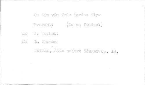 //// ix //// Lic //// Om din vän frn jorden flyr //// Evarest? (T:o zu finden?) //// J, .:erner, L. Norman //// 1:orran, kt;ta ov,ärre Såner Op. 13. ////