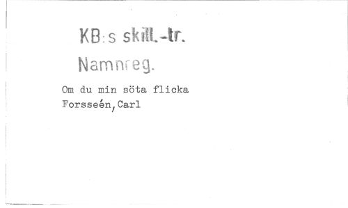 //// KB:s skil.tr. //// Namnreg. //// Om du min söta flicka Forsseen Carl ////