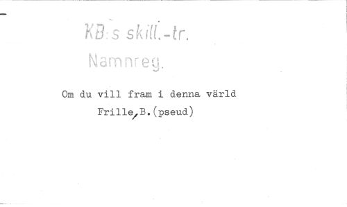 //// B:s skf, -tr cm nr e tg. //// Om du vill fram i denna värld Frille B.(pseud) ////