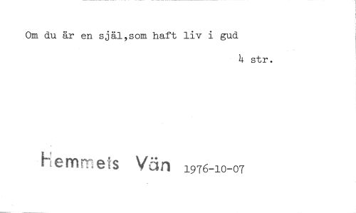 //// Om du är en själ,som haft liv i gud //// 4 str. //// Hemmets Vät) 1976-10-07 ////