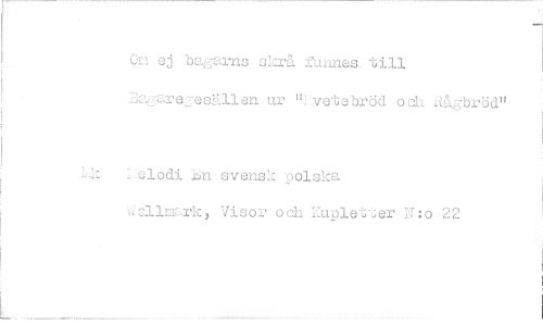//// Om ej bagarns skrå funnes. till //// BagaregesUlen ur "Lvetsbröd och Rågbröd" //// bn svensk polska //// .1cIllark, Visor och Kuplev.er N:o 22 ////