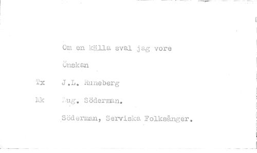 //// Om en källa sval jag vore ;åskan //// x J.L, ,tuneberg //// tIg„ Söderni //// Söderman, Serviska Folksånger, ////