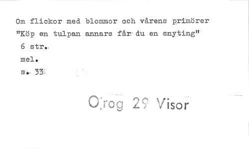 //// Om flickor med blommor och vårens primörer "Köp en tulpan annars får du en snyting" 6 str., //// mei. //// 2 Visor ////