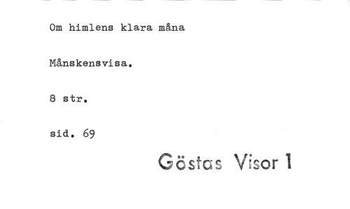 //// Om himlens klara måna //// Månskensvisa. //// 8 str. sid. 69 //// GÖStGS Visor 1 ////