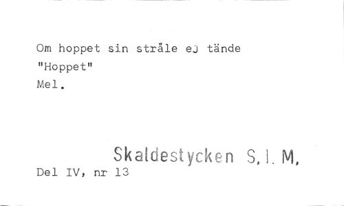 //// Om hoppet sin stråle ej tände "Hoppet" //// Mel. //// Skaldestycken S, 1. M, //// Del IV, nr 13 ////
