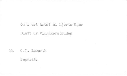 //// Om i ert bröst ni hjerta äger Duett ur ViJ.gäkersbrudeh //// Lik C .J . Lewerth //// Separat. ////