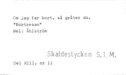 //// Om Jag far bort, så gråter du, "Bortresas" //// Mel: Åhlström //// Skaldestyck _n S, M, //// Del XIII, nr 11 ////