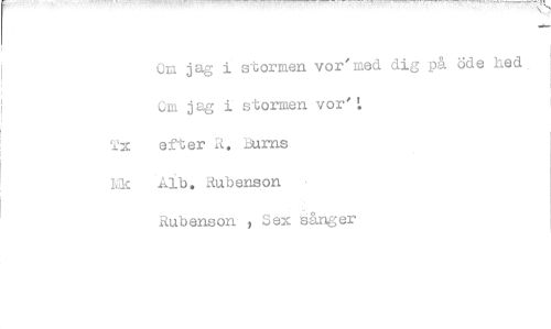 //// em jag i stormen vor' med dig på öde hed, //// Gm jag i stormen vor': //// 'ix efter t. Bums //// Alb. Rubenson //// Rubenson ) Sex sånger ////