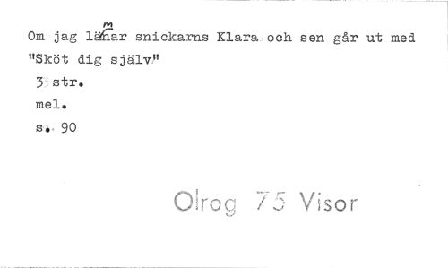 //// Om jag läder snickarns Klara och sen går ut med //// "Sköt dig själv" //// 3 str. //// nie 1. //// s. 90 //// ()Irae kar ////