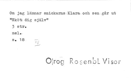 //// Om jag lämnar snickarns Klara och sen går ut //// "Sköt dig själv" //// 3 str. //// mel. //// s. 18 //// 0:rog R o r, e n VisoC ////