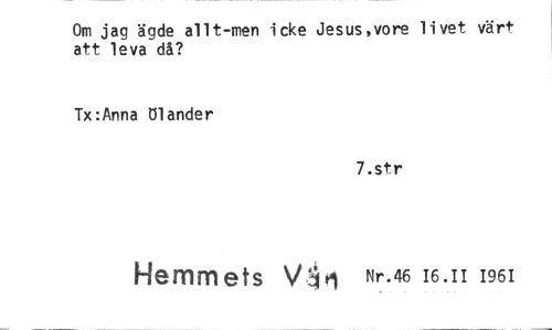 //// Om jag ägde allt-men icke Jesus,vore livet värt att leva då? //// Tx:Anna tilander //// 7.str //// Hemmets Nr.46 16.11 1961 ////