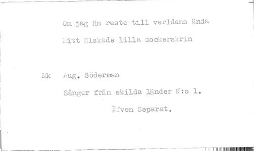 //// On jag än reste till verldens ända itt älskade lilla sockerskrin //// Lic ,Atg. Söderman //// Sånger från skilda länder N:o 1. kiven Separat. //// [fl r 11,-rn 1 11,11111111.111111111.11111•1.111111-. ////