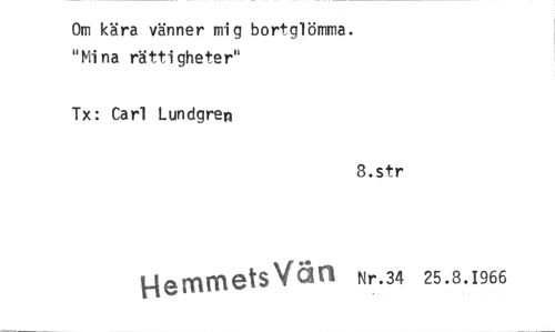 //// Om kära vänner mig bortglömma. "Mina rättigheter" //// Tx: Carl Lundgren //// 8.str //// HemmetsVan Nr.34 25.8.1966 ////