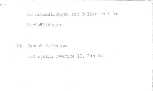 //// Om michablidagen som faller in i gir .clia%lidagen //// Lic Svensk folkvisa //// Jet sjung. Sverige II. N:0 68 ////