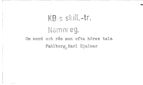 //// KB:s skift.-tr, //// Namnreg. //// Om mord och rån man ofta höres tala Fahlborg/Karl Hjalmar ////