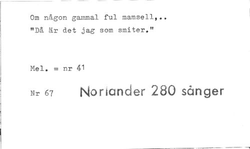 //// Om någon gammal ful mamsell,.. "Då är det jag som smiter." //// Mel. = nr 41 //// Nr 67 Noråander 280 sånger ////