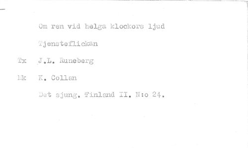 //// Om ren vid helga klockors ljud //// Tjensteflickan //// Tx J.L. Runeberg //// ils K. Collan //// Jet sjung. 2inland II. N:o 24. ////