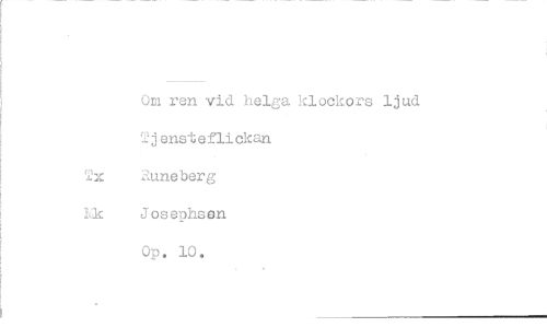 //// Om ren vid helga klockors ljud Tjensteflickan //// Tx Runeberg //// Lic Josephson //// Op. 10. ////