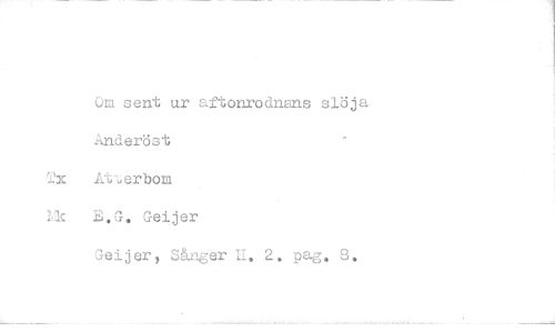 //// Om sent ur aftonrodnans slöja //// Anderöst //// Tx At verborre //// Lk E.G. Geijer //// Geijer, Sånger U. 2. pag. 8. ////