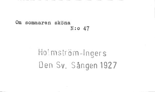 //// Om sommaren sköna //// N:0 47 //// Ho rnströrn-Ingers //// Den Sv. Sången 1927 ////