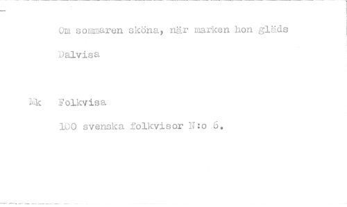 //// Om sommaren sköna, när marken hon gläds Dalvjsa //// Folkvisa //// 100 svenska folkvisor N:o 6. ////