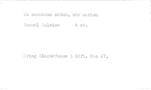 //// Om sommaren sköna, när marken //// 1 Dalvisa 4 st. //// Kring Sångarfanan 3 häft. N:o 47. ////