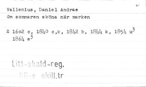 //// Vallenius, Daniel Andrae //// Om sommaren sköna när marken //// E 16o2 c, 1840 c,k, 1842 b, 1844 k, 1854 u3 1864 e3 //// Utt-skald•-reg, ////