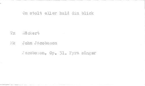 //// Om stolt eller huld din blick //// ackert //// Nk John Jacobsson //// Jacobsson, Op. 31. Fyra sånger ////