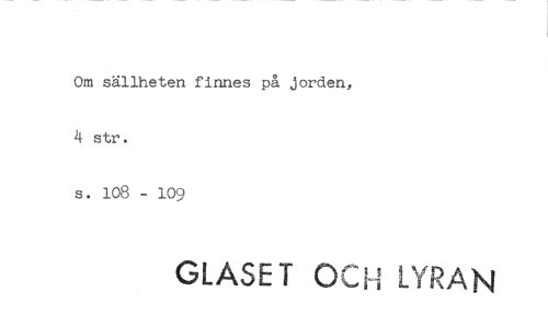 //// Om sällheten finnes på jorden, 4 str. //// s. 108 - 109 //// GLASET LERAN ////