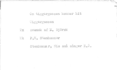 //// Om tiggargossen koraner hit //// Tiggargossen //// Tx svensk af E. Björck //// Ek P.U. Stenhaumar //// StenhamLur, Nio små sånger H.2. ////