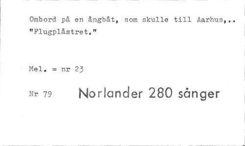 //// Ombord på en ångbåt, som skulle till Aarhus,.. "Flugplåstret." //// Mel. = nr 23 //// Nr 79 Nor ander 280 sånger ////