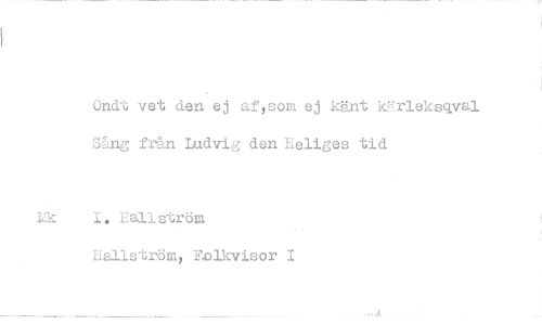 //// Ondt vet den ej 0,f,som ej känt icrlekscival //// från Ludvig den Heliges tid //// Lk I. Eallström //// Hallström, Folkvisor 1 ////