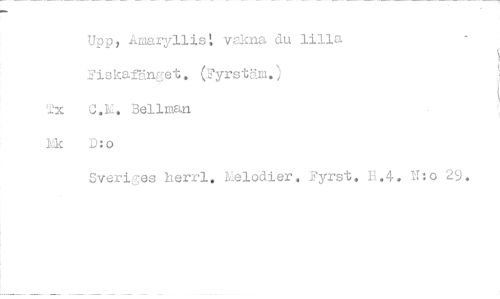 //// Upp, Amaryllis vakna du lilla //// Eiskafänget. (Fyrstäm.) //// Tx C.Y. Bellman //// lk D:o //// Sveries herr, kelodier. Fyrst. 11.4. N:0 29. ////
