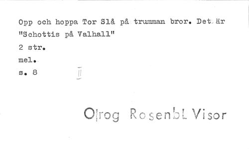 //// Opp och hoppa Tor Slå på trumman bror. Det, är //// "Schottis på Valhall" //// 2 str. //// mel. //// s. 8 //// (Yl-og RoenSL Vi sor ////