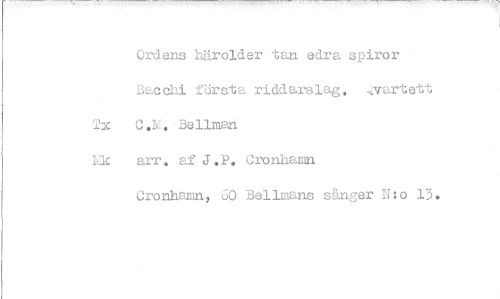 //// Ordens härolder tan edra spiror aodni första riddarslag. ..vartstt Tx C.M.-Bellman //// Ek arr . af J . P. Cronhamn //// Cronhamn, 60 Bellmans sånger N:o 13. ////