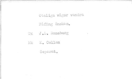 //// Otaliga vågor vandra //// Fåfäng önskan. //// .21z J.L. .11.neberg //// Lk K. Collan Separat. ////