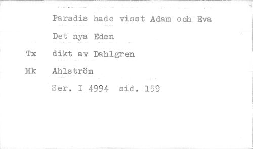 //// Paradis hade visst Adam och Eva //// Det nya Eden //// Tx dikt av Dahlgren //// Mk Åhlström //// Ser. 14994 sid. 159 ////