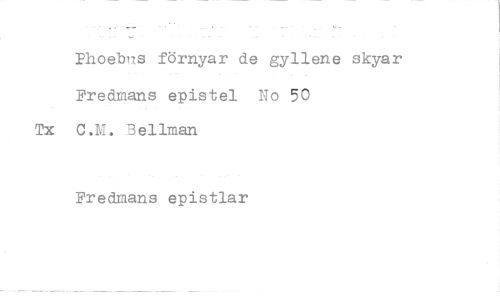 //// Phoebus förnyar de gyllene skyar //// Fredmans epistel No 50 Tx C.M. Bellman //// Fredmans epistlar ////