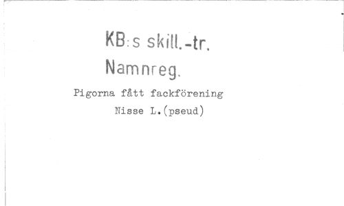 //// KB:s //// Namnreg. //// Pigorna fått fackförening Nisse L.(pseud) ////