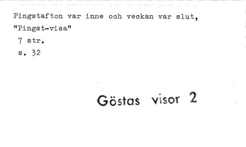 //// Pingstafton var inne och veckan var slut, "Pingst-visa" //// 7 str. s. 32 //// Göstas visor 2 ////
