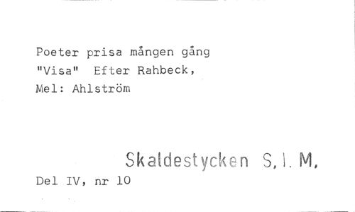 //// Poeter prisa mången gång "Visa" Efter Rahbeck, Mel: Ahlström //// Skaldestyck S, 1. NI, //// Del IV, nr 10 ////