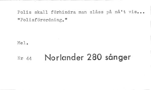 //// Polis skall förhindra man slåss på nå't vis... "Polisförordning." //// Mei.. //// Nr 44 Noriander 280 sånger ////