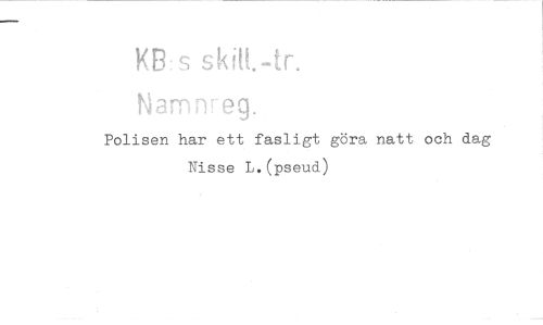 //// KB: s skitt.-tr Namnreq. //// Polisen har ett fasligt göra natt och dag Nisse L.(pseud) ////