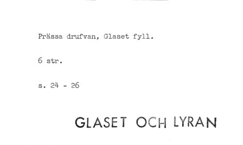 //// Prässa drufvan, Glaset fyll. 6 str. //// s. 24 - 26 //// GLASET OCH LYRAN ////
