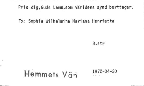 //// Pris dig,Guds Lanin,som världens synd borttager. Tx: Sophia Wilhelmina Mariana Henrietta //// 8.str //// Hemmets Vän 1972-04-20 ////