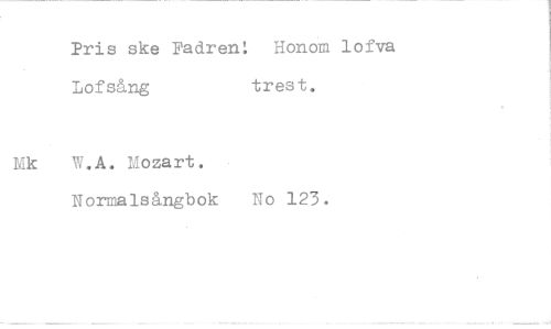 //// Pris ske Padren: Honom lofva //// Lof sång tres t. //// Mk VvT.A. Mozart. //// Normalsångbok No 123. ////