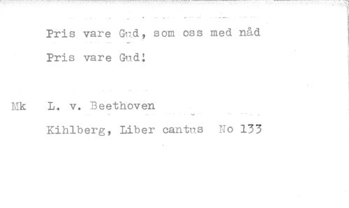 //// Pris vare Grd som oss med nåd Pris vare Gud! //// Mk L. v. Beethoven //// Kihlberg, Liber cantus No 133 ////